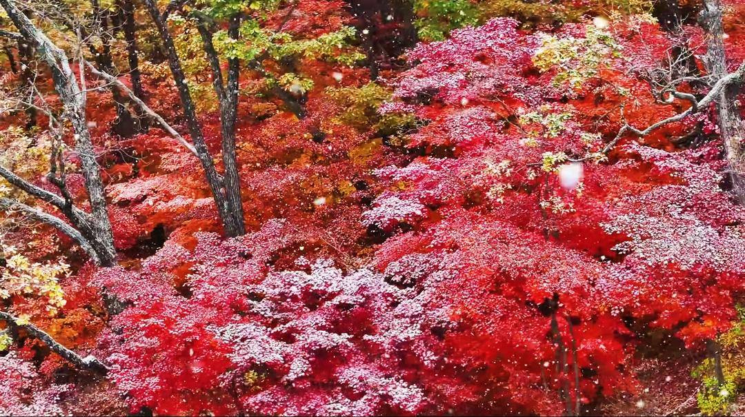 하얀 눈과 산을 붉게 물들인 단풍이 어우러져 ‘산의 절반은 단풍이고 절반은 흰눈’이라는 장관을 이루었다.