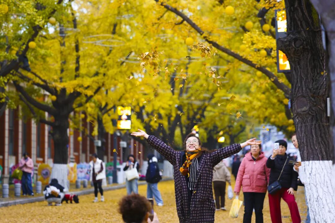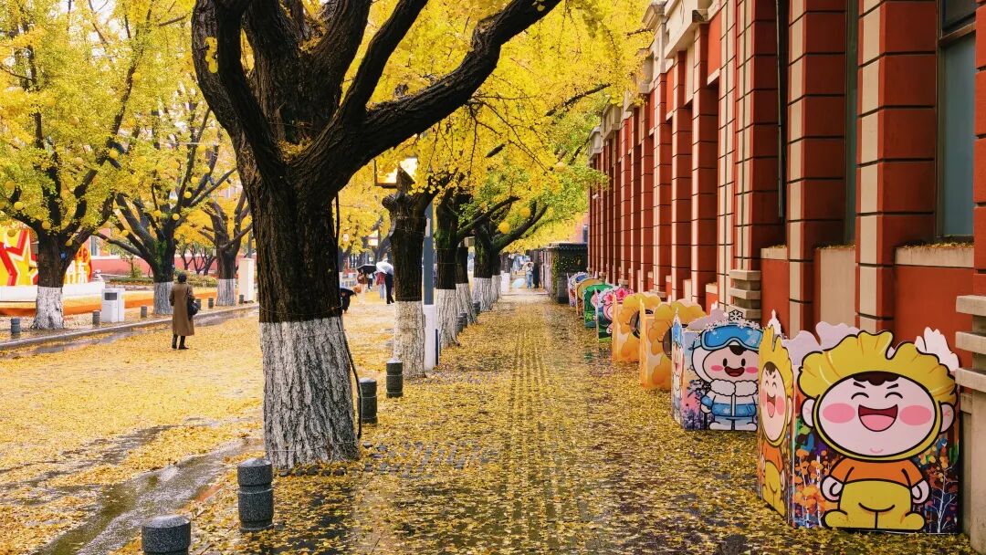 10월 29일, 가랑비가 그친 뒤 공기가 한결 상쾌해졌다. 구위로 량쪽의 은행나무는 잎이 무성하게 우거졌고, 황금빛 잎들이 산들바람에 살랑살랑 흔들리고 있었다. 비에 젖은 은행나무 잎은 색이 더욱 선명해졌고, 길바닥에 쌓인 락엽은 마치 ‘황금 융단’을 펼쳐놓은 듯했다.