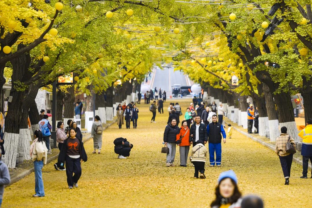 최근 구위로, 칠경가, 륙위로 등 여러 백년 은행나무 거리가 가장 아름다운 시절을 맞아 도시가 황금색 가을 경관으로 더할 나위 없이 매혹적으로 변모했다.