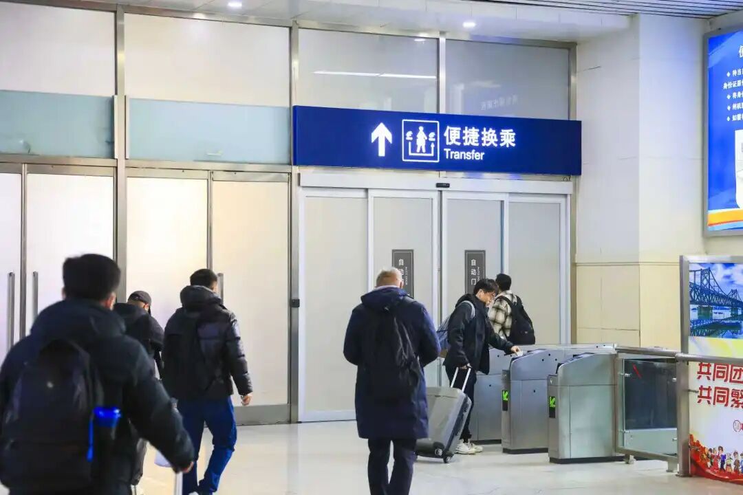 현재 환승 려객의 진입 절차는 매우 간편하다. 우선 본인이 당일 련계승차권을 소지했는지 확인한다. 개찰기 앞에서 본인 신분증을 대면 체계 확인이 끝나면 개찰기가 자동으로 열리고 려객은 곧바로 대합실로 들어간다.