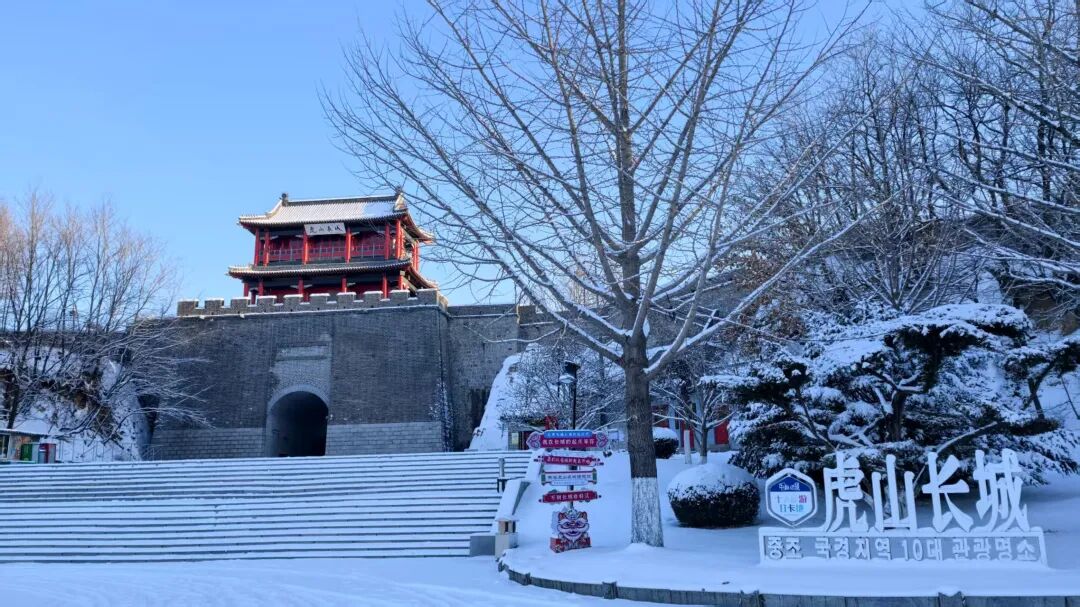 12월 23일 내린 눈이 료동 명대장성의 동단 기점인 호산장성에 하얀 옷을 입혔다. 성벽과 산체가 적설로 덮이며 고요한 겨울 풍경을 자아냈다.