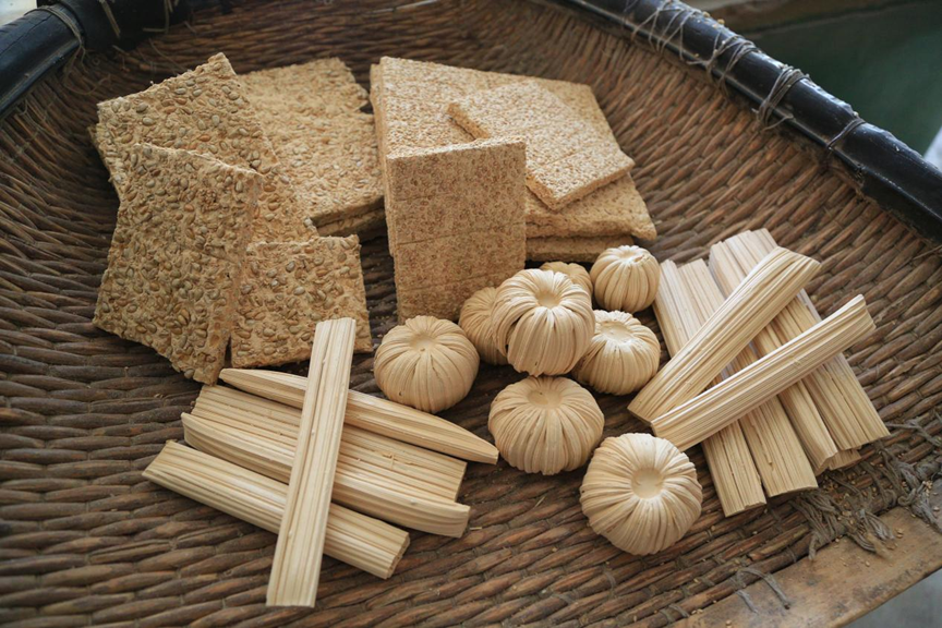 건평지역의 전통 수제사탕으로는 엿과 참깨젤리 등이 유명하다. 이 지역은 밀과 잡곡의 주요 산지로서 예로부터 이주민들이 전해온 음식기술이 향토문화와 어우러지면서 고소하고 바삭한 식감이 특징인 독특한 과자 및 당류문화를 형성하였다.