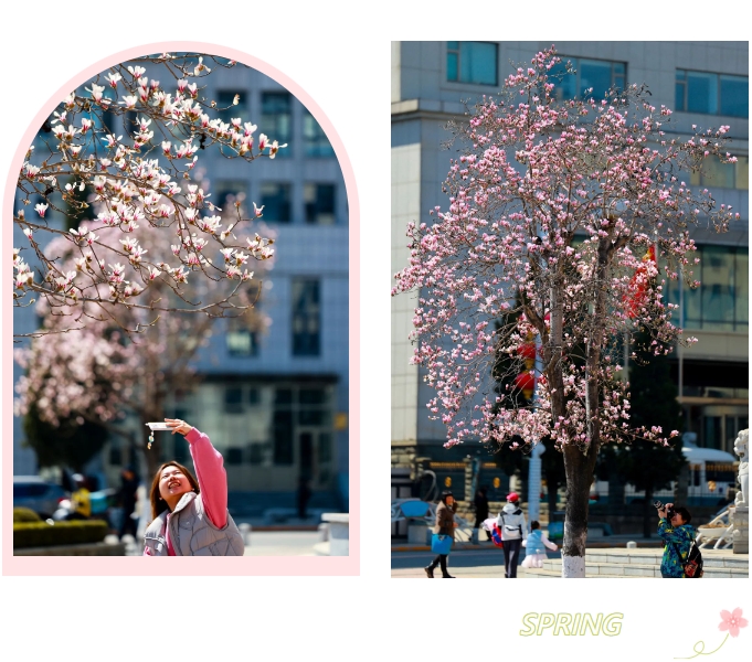 이 목련나무들은 해마다 3월말에서 4월초 사이에 꽃을 피우며 그 화사한 모습으로 인해 단동 시민들 사이에서 '봄을 여는 첫 꽃'으로 불리며 특별한 사랑을 받고 있다. 다음 주쯤이면 목련꽃이 본격적으로 만개해 순백의 고운 꽃잎과 은은한 향기로 교차로를 그림처럼 아름답게 물들일 전망이다.