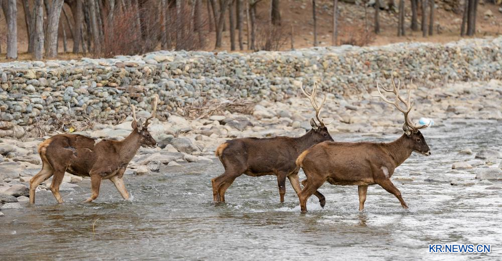 [신화망 중국 라싸 3월 17일발] 15일 서장자치구 산남시 내동구 결파촌에서 국가 1급 보호동물인 흰입술사슴이 먹이를 찾는 모습이 포착되였다. 현지의 생태환경이 지속적으로 개선되고 생물다양성 보호가 강화되면서 흰입술사슴의 개체수가 점차 늘어나고 있는 것으로 나타났다.