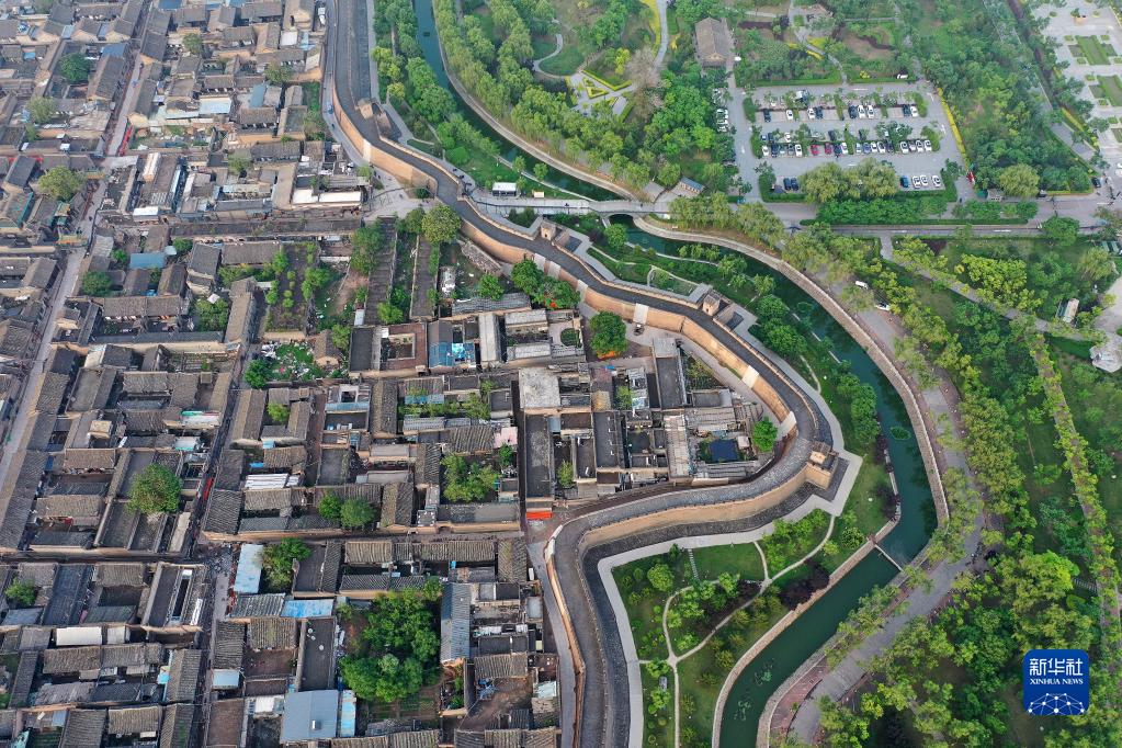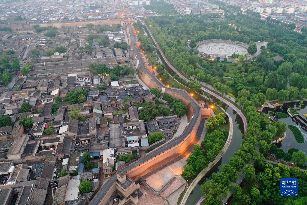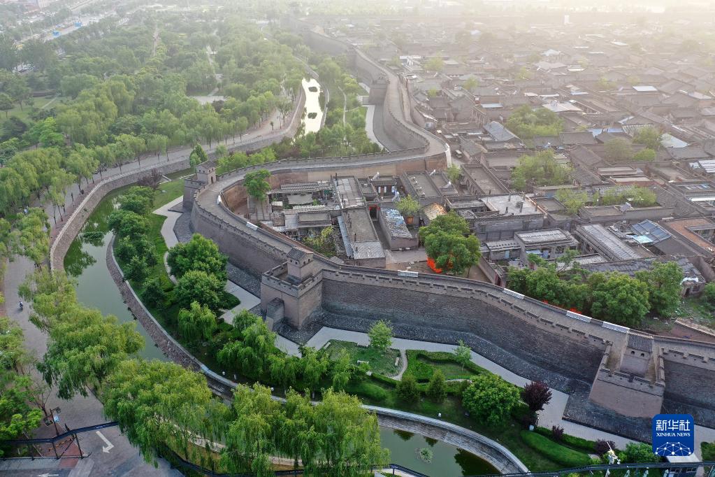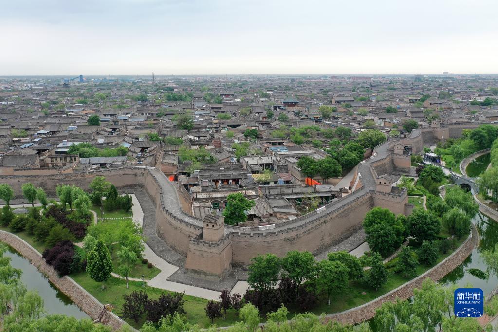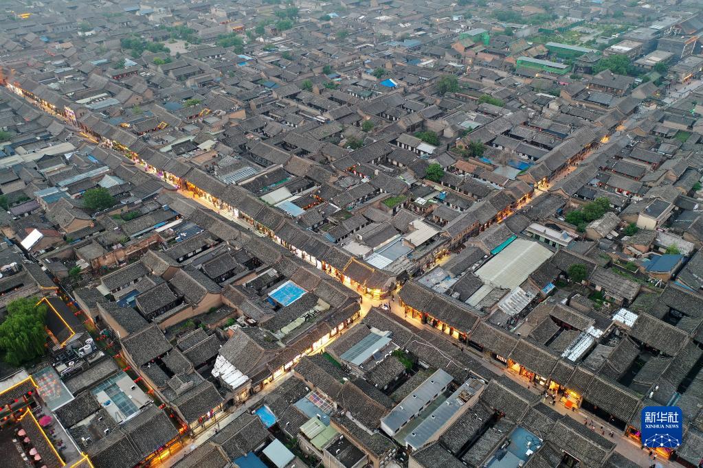 平遥古城一角(5月29日摄,无人机照片)。