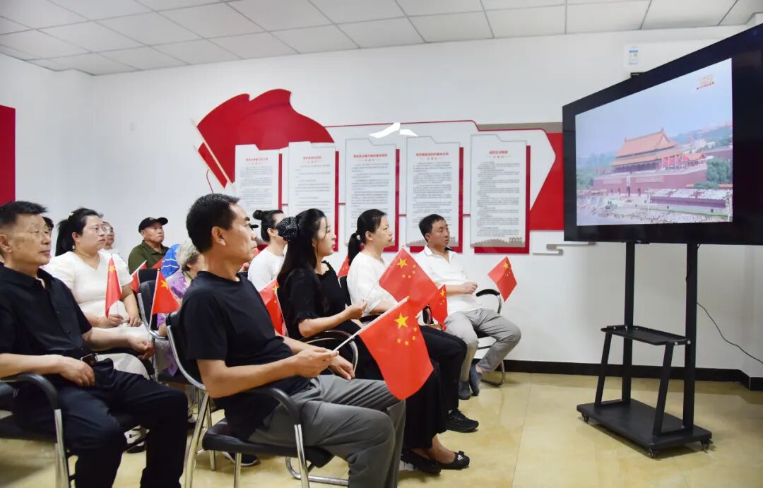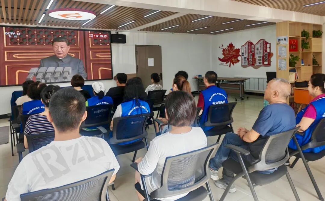 元宝区广济街道新丰社区、解放社区、平安社区的党员、网格员以及居民们齐聚一堂,共同收看纪念大会。