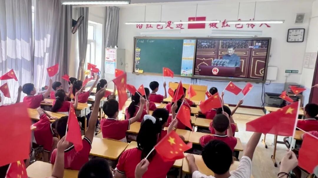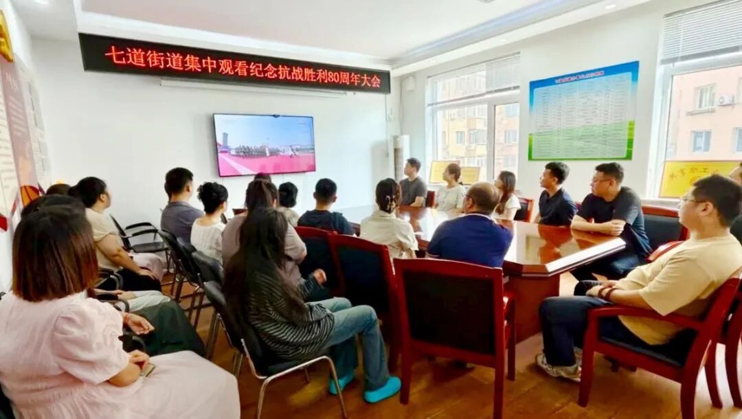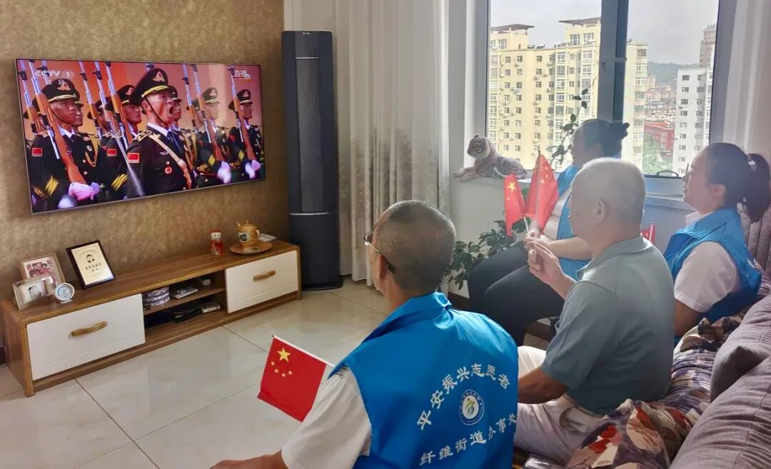 振兴区纤维街道黄海社区组织辖区群众集中收看纪念大会