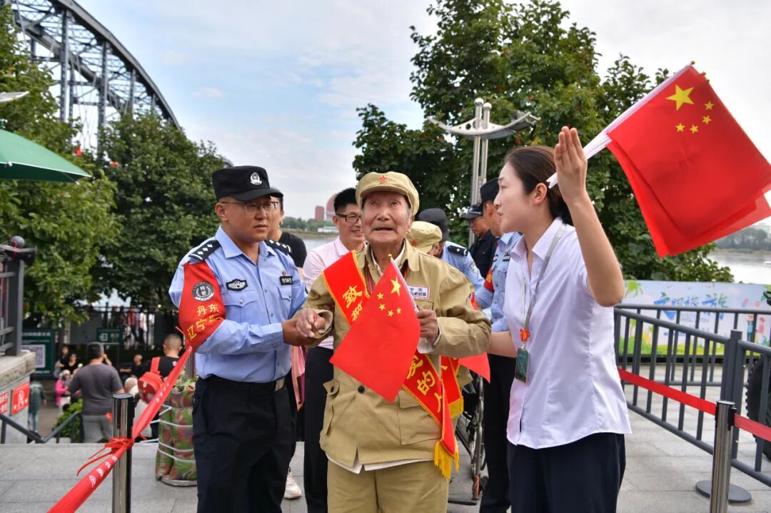 为了保障这次特殊行程的顺利与温馨,断桥景区特意开通了“绿色通道”,安排了讲解员为老战士们详细讲述丹东这座英雄城市的发展与变迁。看到70多年前的抗美援朝出征地如今繁荣安宁,两位老战士情绪激动,眼眶湿润。丹东公安特警队员全程提供了细致入微的照顾与护卫,确保了老英雄们游览的安全与舒适。