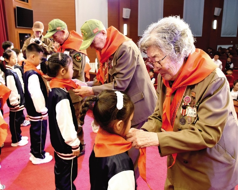 红房街小学举行“石榴花开映丹心,领巾飘扬心向党”主题大队会暨二年级新队员入队仪式。当3名志愿军老战士来到现场,郑重地为新队员佩戴上人生的第一条红领巾时,全场掌声雷动。老战士们勉励全体少先队员珍惜来之不易的幸福生活,热爱祖国、勤奋学习,做共产主义合格的接班人。