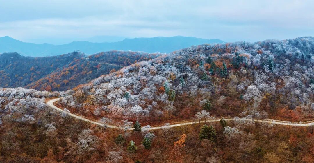 当晨曦微露,游客们惊喜地发现,昔日色彩斑斓的山岭仿佛在一夜之间被施了魔法。原本火红、金黄的枫树、桦树枝头,凝结了厚厚一层洁白的冰晶,形成了美丽的雾凇。