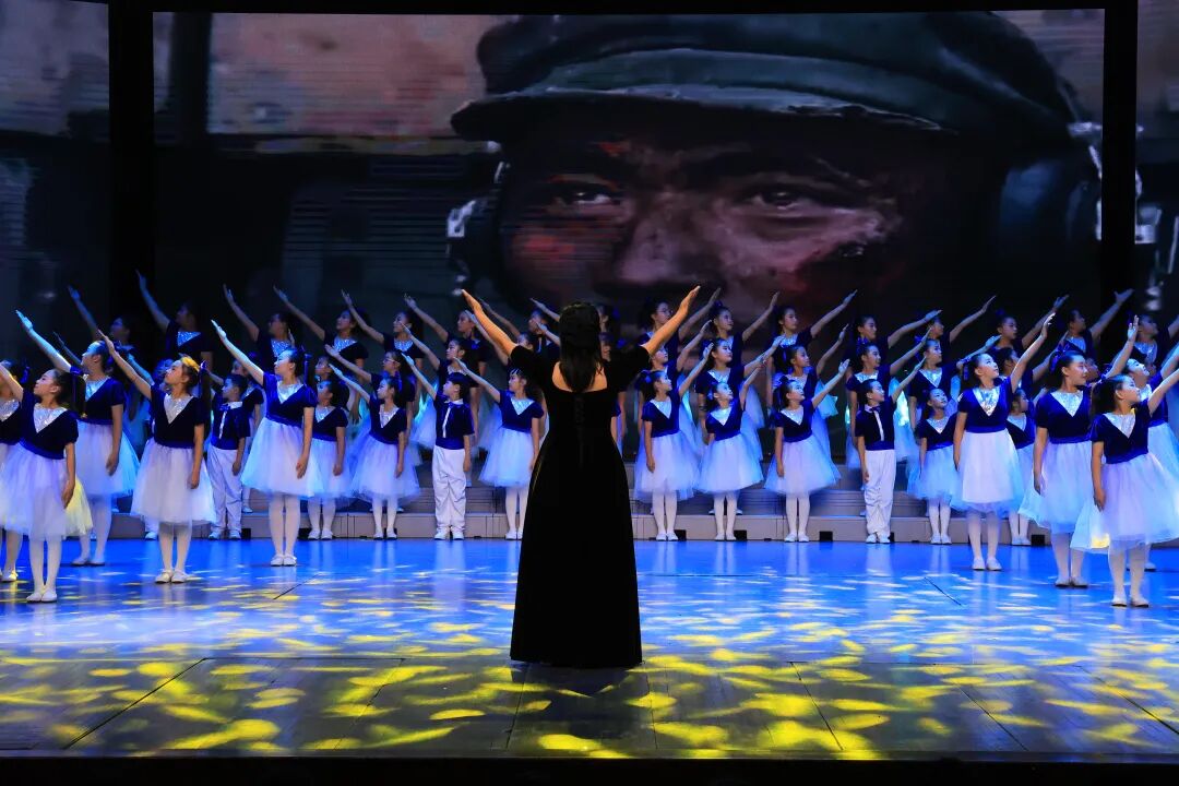 演出围绕“不负韶华 薪火相传”主题,共分为“山河无恙”“薪火承志”“筑梦未来”三个篇章。开场节目《山河已无恙》以深情合唱表达对英雄先烈的崇高敬意;《在灿烂的阳光下》《一条大河》等节目生动呈现了和平年代的幸福生活,展现新时代青少年对革命先辈的深切缅怀。在“薪火承志”篇章中,根据全市“传承红色基因 童心致敬英雄”少儿故事大赛优秀作品改编的《一支钢笔》,通过真挚感人的表演,展现了红色基因的代代相传。“筑梦未来”篇章将演出推向高潮,《强国一代有我在》《少年有志》等节目充分展现了新时代青少年立志报国、奋发向上的精神风貌。演出在气势恢宏的大合唱《中国我的爱》中圆满落幕。