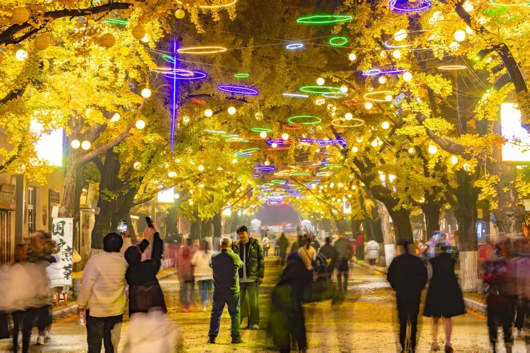 如今,夜赏银杏已成为丹东文旅新热点。“黄金大道”与城市烟火气交织,既展现了生态之美,更彰显了城市独特底蕴,成为深秋里最灵动、最动人的“城市名片”。