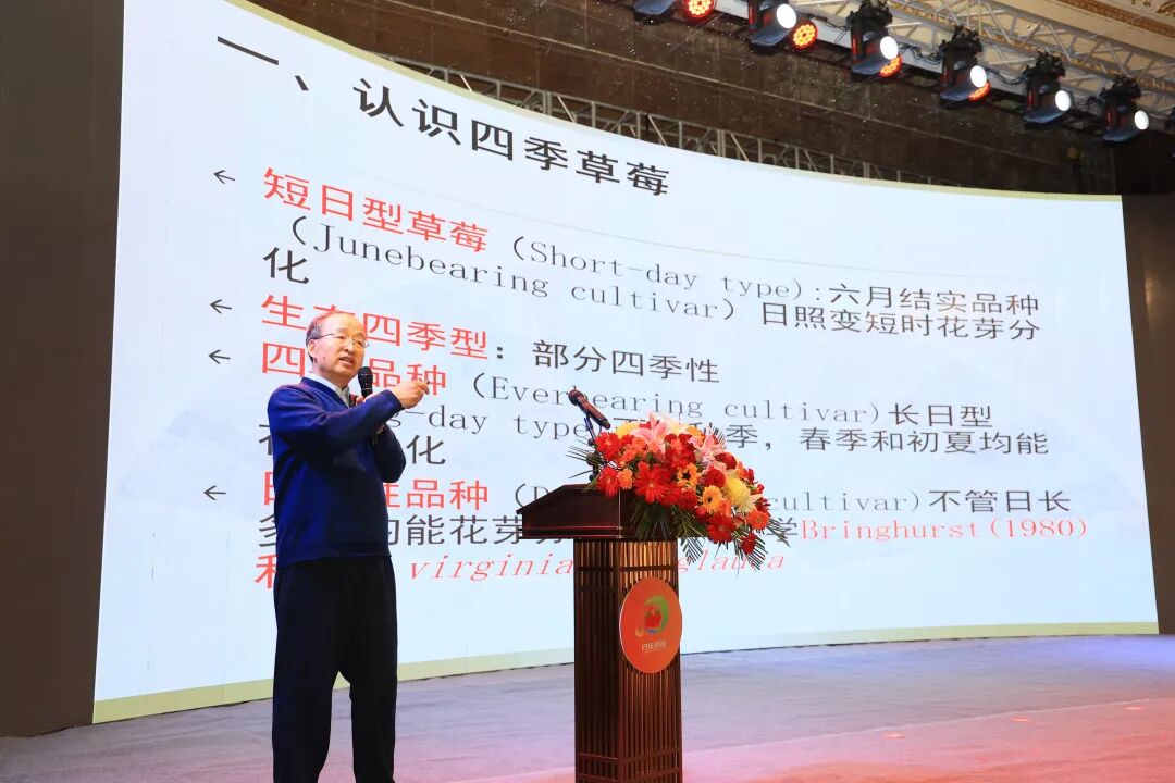 草莓育种是产业发展的源头根基。中国园艺学会草莓分会名誉理事长张运涛率先带来《四季草莓育种与产业发展》报告,深度解析“四季草莓”育种逻辑与栽培要点,揭秘草莓打破季节限制、实现四季飘香的核心密码,为丹东草莓品种创新指明方向,让在场从业者对品种迭代升级充满信心。