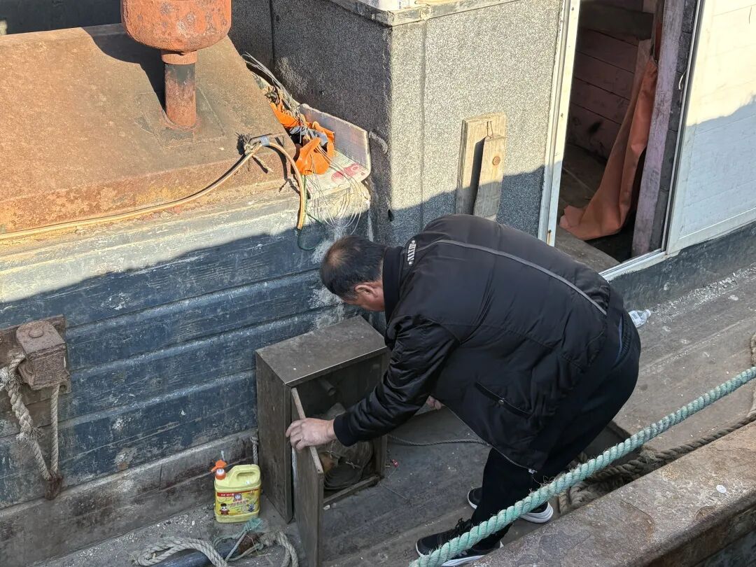 “人员在岗,设备无误,才能出海。”作为船长,不仅要细心、耐心,还要思虑周全,负责好全船人的安全,守好“出海关”是吴永军强调的第二点。每次出海前,吴永军都会仔细检查渔船,查看船舱壁、舱底、水密门、舱口盖的完整性;电气线路是否存在老化裸露、接头松动、漏电等问题;船用北斗、AIS、甚高频、中高频、号灯等通导设备是否正常;是否配备足够数量的有效瓶装灭火器、灭火弹等消防设施……每次检查都要仔细且不厌其烦,每一个安全细节关键时候都能救命,而每一次侥幸都会埋下危险隐患。