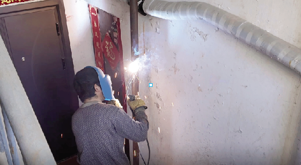 节目下线后,金山热电迅速派维修人员赶赴现场。经检查,该单元五、六、七层楼的管道均存在严重漏点。为避免影响整个单元正常供暖,维修人员决定先对这三层的老旧管道进行局部更换。在狭窄的楼道空间内,工人关闭阀门,完成旧管切割与新管焊接安装。