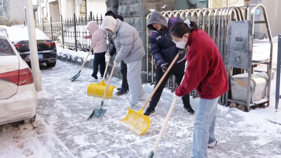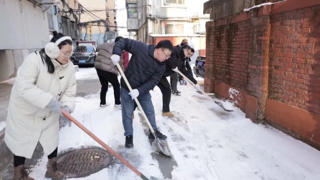 市文广局组成党员干部志愿服务队下沉红房一社区、红房二社区清理路段积雪,有效解决了群众“出行难”问题。
