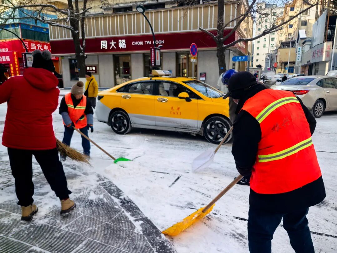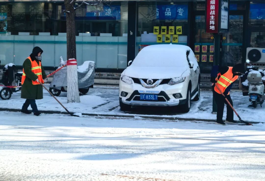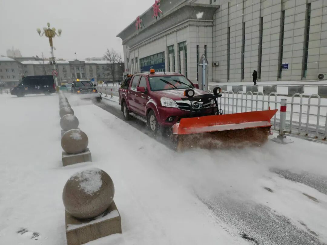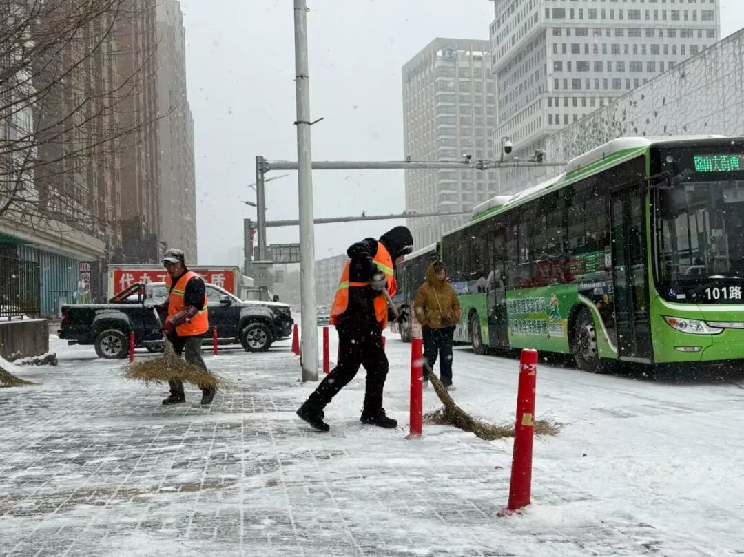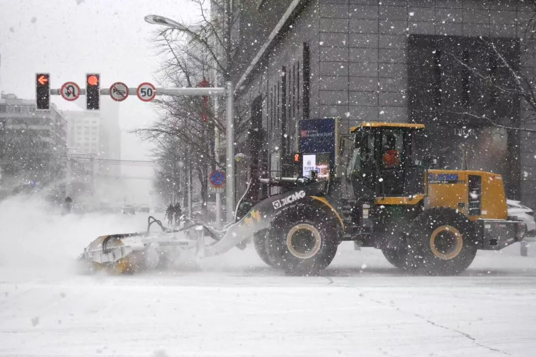 多台大型除雪设备陆续投入使用,与环卫工人密切配合,对主干道、桥梁、坡路等重点区域进行快速清理,确保道路畅通无阻。
