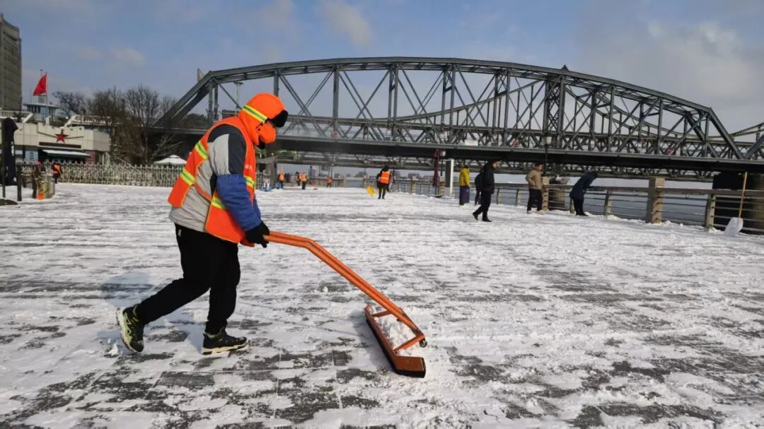 铁路丹东站同样以雪为令,迅速组织干部职工奔赴站前广场、进出站通道、站台、线路及道岔等关键区域,全力清扫积雪。同时在车站候车厅、检票口等人员密集区域及时铺设防滑垫,设置安全提示标识,安排专人引导旅客有序进出站。一系列举措有效防范了积雪积冰带来的安全隐患,确保铁路运输安全有序畅通,保障旅客出行平安。