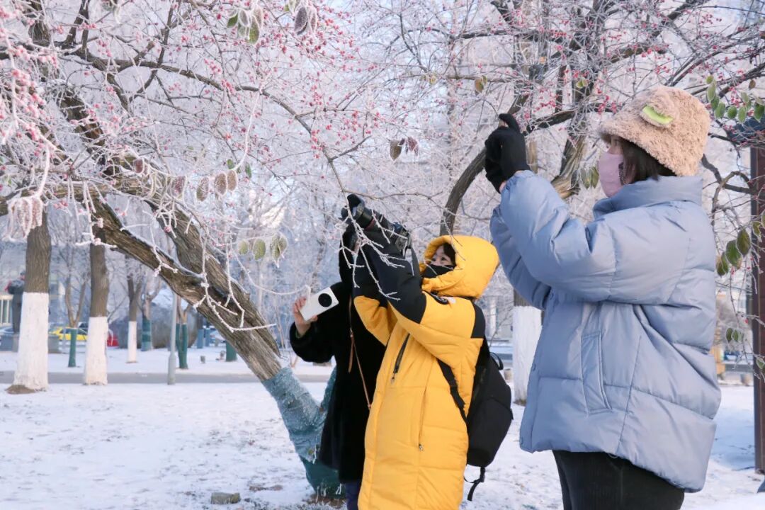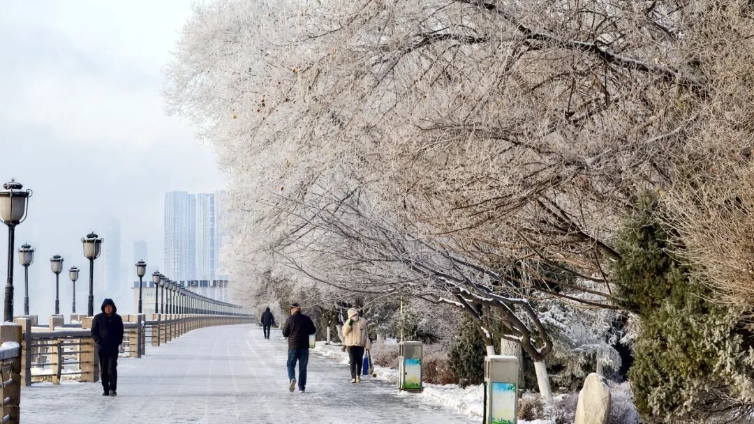 早上起来看到窗外一片洁白,还以为下雪了,仔细一看原来是雾凇,太美了!家住滨江路附近的李女士兴奋地说。许多晨练的市民纷纷停下脚步,用手机记录下这一难得的美景。
