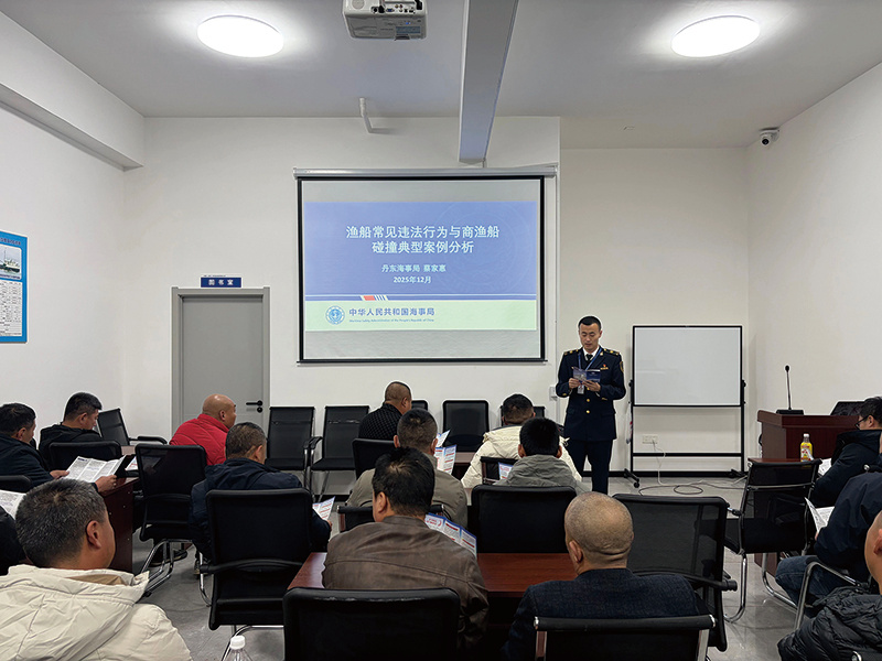 近日,东港海事处执法人员走进辖区渔船船员培训学校,开展商渔船防碰撞专题宣讲活动,提升船员的安全意识、法律意识和遇险自救互救能力,进一步深化“商渔共治”工作成效。