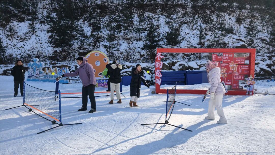 辽宁省大众滑雪挑战赛(丹东站)赛事,雪地匹克球、雪地足球等趣味运动,在冰天雪地中感受运动乐趣。