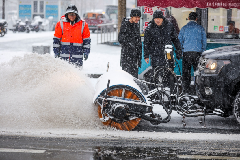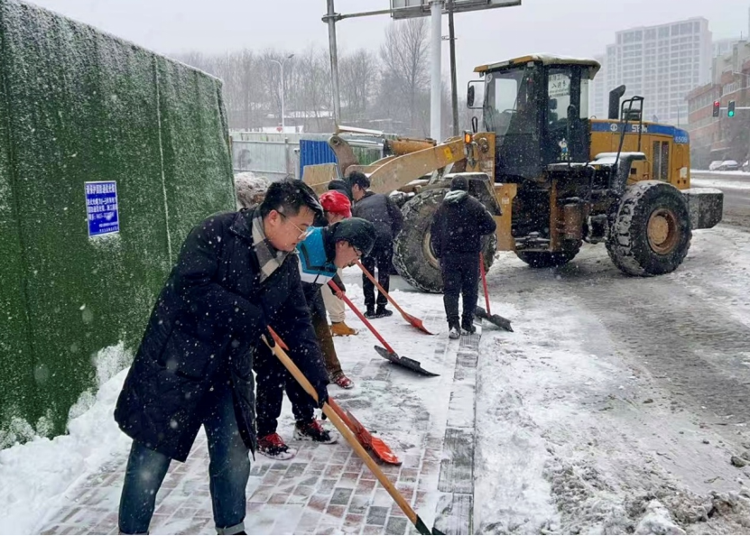 元宝区兴东街道集结多方力量开展全方位扫雪工作。