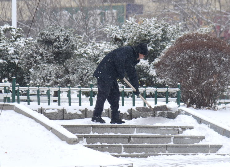 振安区鸭绿江街道组织机关干部、社区工作者、综合执法队员组建清雪队伍,对辖区主次干道、背街小巷、无物业小区出入口等重点区域开展全方位清扫。