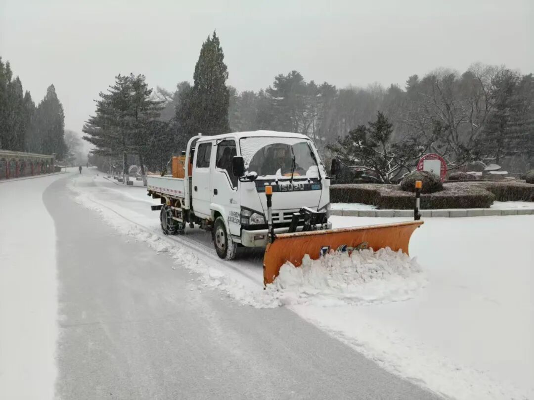 除使用扫帚、铁锹进行清扫外,还调配小型除雪设备,力求在最短时间内清除积雪积冰,最大限度减少降雪对市民游园的影响。