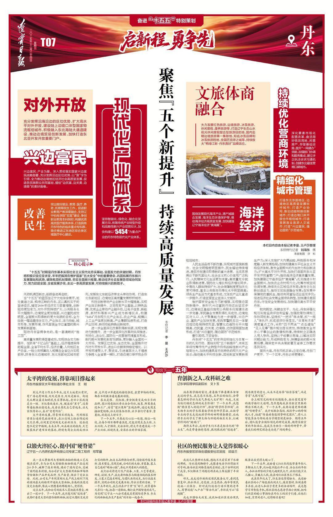 当“十五五”的蓝图在辽宁大地徐徐展开,地处黄海之滨、鸭绿江畔的丹东,正以真抓实干的奋进姿态,锚定2030年经济实力显著增强,创新驱动更加有力,对外开放持续扩大,公共服务水平大幅提升,边境安全更加稳固,兴边富民成效明显,全面振兴取得新的更大突破的目标,全力绘就一幅涵盖综合实力、产业体系、活力动能、城市形象、发展环境、作风面貌全方位重塑的振兴发展崭新画卷。