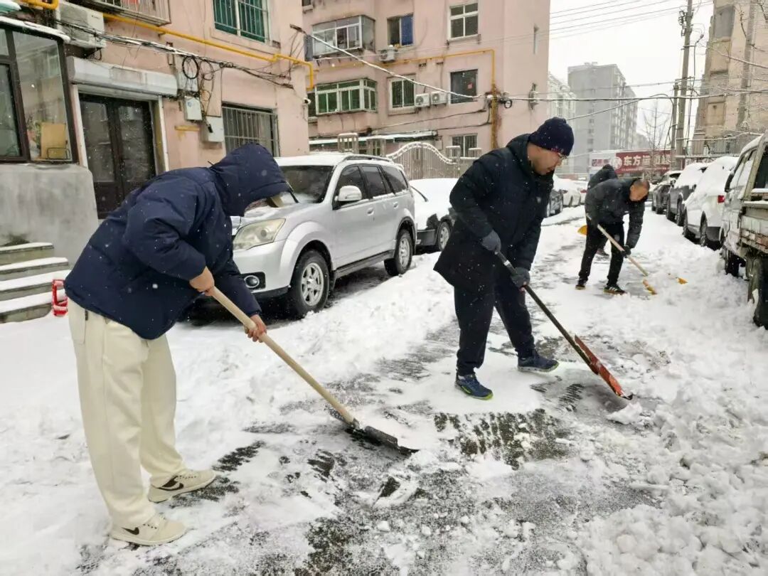 市委宣传部党员干部深入金山镇馨悦社区除雪,为群众开出“暖心路”;市教育局“红马甲”志愿者不畏严寒,清理小区出入口及背街小巷,让“志愿红”成为雪中最暖风景;市法院聚焦易滑易堵点位开展专项清理,同步设置警示标识,织密安全防护网;市水务局、市生态环境局党员志愿者冲锋在前,全力铲除积雪暗冰,消除出行隐患;市农业农村局综合行政执法大队与社区干部分工协作、高效联动,贴心服务赢得居民纷纷点赞。