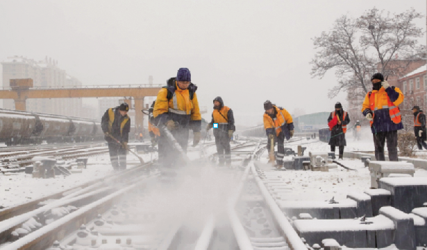 启动除雪保障机制,对450组道岔关键设备落实责任到人,使用风力除雪机、除雪铲等工具清理道岔积雪,同步清扫线路与道口积雪,全力保障行人、车辆通行安全。