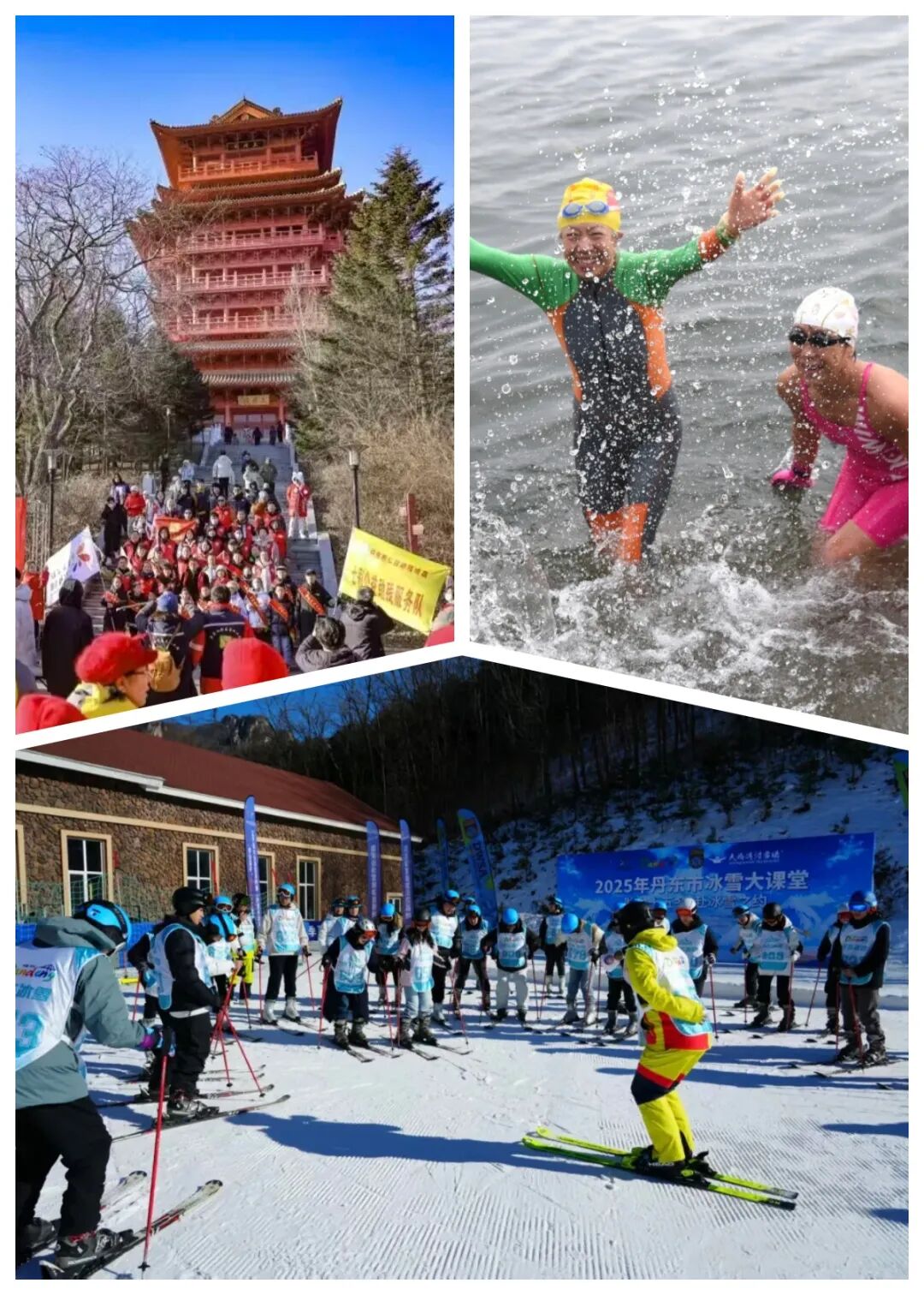 2026年1月1日,锦江山公园边境新年万人登高大会,踏雪登顶祈愿新岁;滨江中路的第三十八届鸭绿江冬泳节,健儿跃江诠释热血。