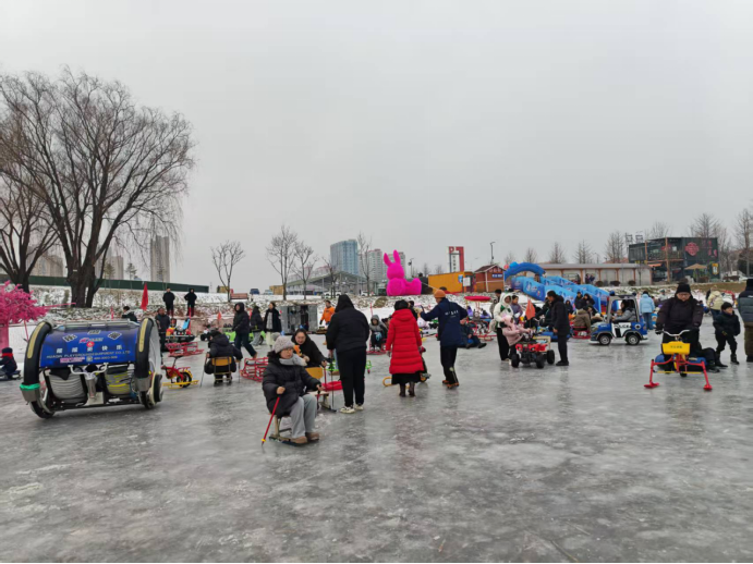 同步启幕的新区嘉年华冰雪乐园,精心规划溜冰乐园与戏雪乐园两大主题区域,十余种趣味项目一站式配齐,承包市民游客冬日专属快乐。溜冰乐园内,市民游客可脚踩冰刀肆意滑行,感受风与速度的激情碰撞,也能体验冰上自行车、冰上爬犁等趣味项目,无论是亲子同行还是好友结伴,都能收获满满欢乐;戏雪乐园里,雪上漂移车带你在雪道上风驰电掣,雪地碰碰球让大家在碰撞与欢笑中释放压力,重拾纯粹童真乐趣,沉醉梦幻雪国世界。