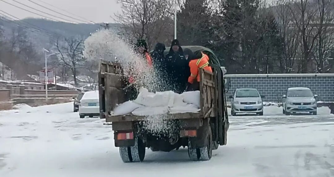 振安区五龙背镇及时组织人员清理辖区道路积雪,保证群众安全通行。