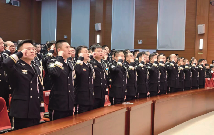 活动现场,一批新警被授予警衔,一枚枚崭新的肩章标志着又一批青春力量正式融入丹东公安的光荣行列。