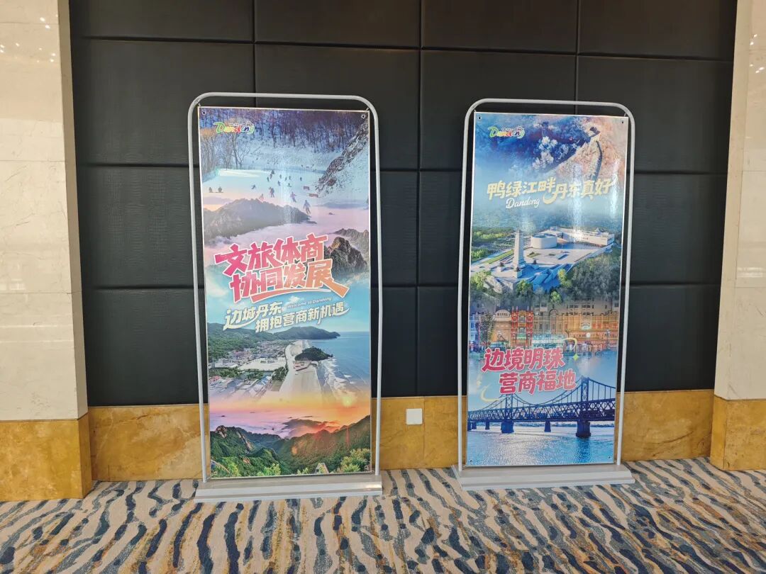 推介会现场丹东文旅专属宣传展板醒目陈列,图文并茂呈现边境风情、生态禀赋、红色底蕴与营商环境建设成果,直观传递“丹东文旅体商协同发展”及“营商福地”的双重价值;循环播放的丹东旅游宣传视频,将鸭绿江风光、抗美援朝红色记忆、银杏红枫盛景、冰雪温泉乐趣等场景生动呈现,让嘉宾沉浸式感受城市多元魅力。
