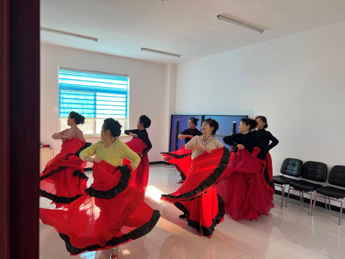 社区特意邀请了两位专业舞蹈老师坐镇指导。考虑到老人们大多是舞蹈“零基础”,老师从斗牛舞基础舞步拆解入手,耐心示范挺胸、摆胯、踏步等核心动作,细致纠正姿势细节;随后逐步推进到队形走位编排,带领大家反复打磨配合节奏。学习过程中,老人们热情高涨、劲头十足,专注地观察模仿老师动作,跟着节拍认真练习。活动室里,激昂的音乐与欢快的笑声交织,大家互相请教、彼此鼓励,氛围热烈而温馨。
