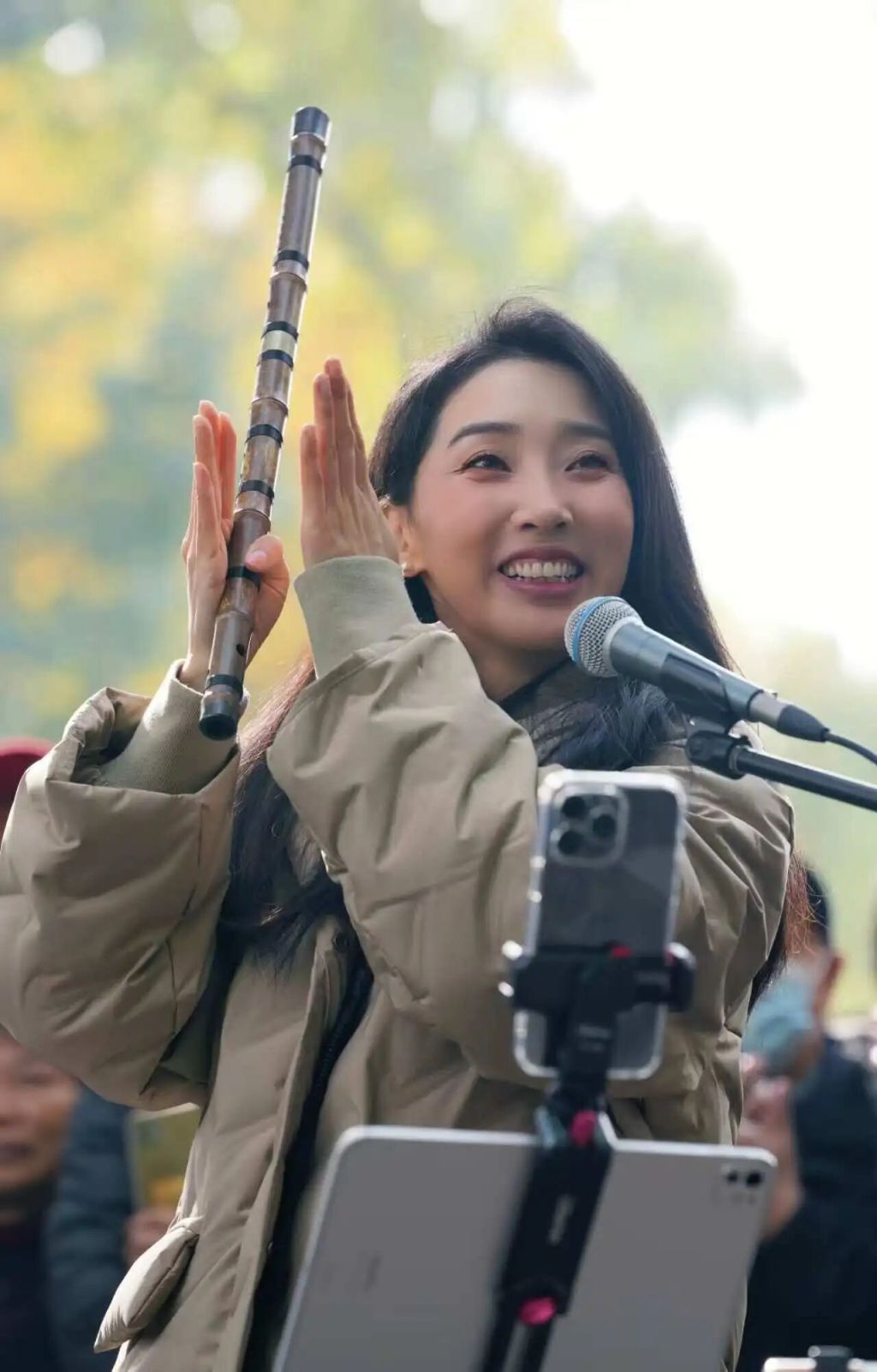 此前,她活跃在自媒体平台,偶尔会分享户外演奏的短视频,拍摄时引来路人围观。大家追问她的演出地点,盼着能现场聆听笛声。这份期待让她萌生了走进公园的想法,让更多人近距离感受民乐魅力。