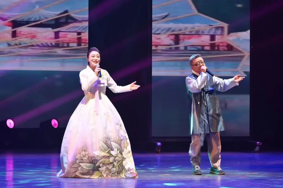 作为朝鲜族文化的标志性符号,民谣二重唱《永庵阿里郎》成为本次展演的一大亮点,两位省、市级朝鲜族民谣传承人登台献艺,婉转悠扬的唱腔承载着千年民族情愫,细腻诠释了这首“民族之歌”的深厚底蕴与动人意境,让观众沉浸式感受朝鲜族民谣的独特魅力。