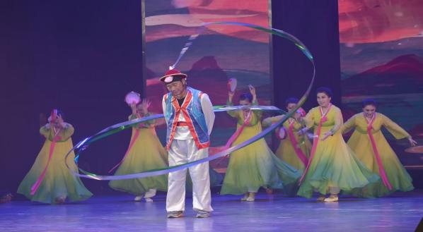 舞蹈《三鼓迎春》更是将展演推向高潮,舞者们手持鼓棒敲响三面彩鼓,以刚劲有力的舞姿、灵动多变的鼓点,将朝鲜族舞蹈的洒脱与新春佳节的喜悦尽情释放,鼓点与舞步呼应,喜庆与祝福交融,每一个动作都传递着对新年的美好期许。