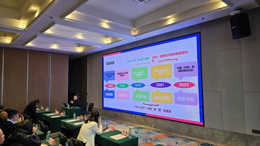 在此基础上,培训指出了丹东的两大核心发展方向:一是打造边贸与跨境电商融合标杆,依托我市边贸企业,依托“边民互市贸易+跨境电商”双业态,叠加8000元以下免税政策与便利化通关红利,通过9710等B2B模式打通从产品到通关闭环,重构边贸数字化转型之路;二是建设东北腹地海陆联运门户,“丹东港+通化陆港”双港协同,打造东北跨境电商货物出海的陆海联运枢纽。依托优化跨境邮件、快件中转服务,构建起衔接东北内陆产业带与东北亚市场的高效流通通道。