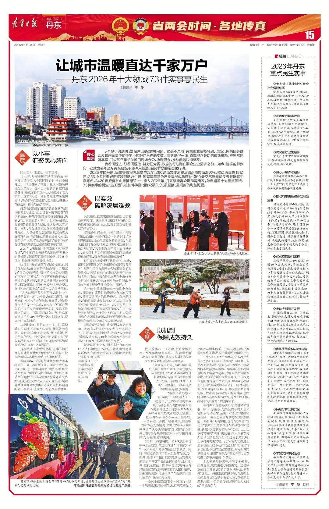今天出版的《辽宁日报》,整版篇幅聚焦2026年丹东民生“施工图”全面铺开。十大领域、73件实事,从改造老旧小区到新增城镇就业,从智慧养老到交通优化,件件瞄准急难愁盼,以更实举措把“民生清单”变为“幸福账单”。