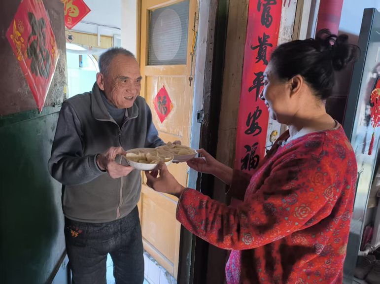 “晓清又送饺子来啦,快进屋坐!”近日,家住浪头镇五一八社区的李善德老人,看着隔壁邻居任晓清端着热气腾腾的饺子走进家门,脸上满是欣慰的笑容。今年80多岁的李善德独居多年,老伴去世后,虽有儿子每周上门备好冷冻饭菜,但任晓清多年如一日的暖心照料,让老人的晚年生活多了分踏实与温暖。