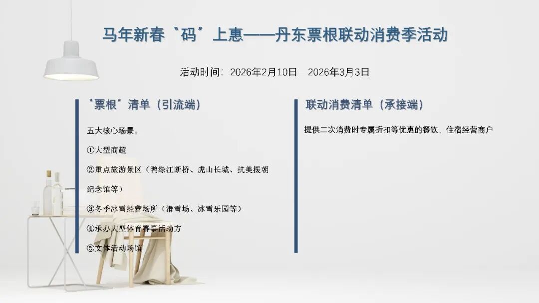 活动现场,市商务局详细介绍了将于2月10日启动的“马年新春“码”上惠 丹东票根联动”消费季活动。该活动创新引入“票根经济”理念,通过“一码两清单”机制,消费者在商超、景区等场所消费后,可获得餐饮、住宿等二次消费优惠,实现“一次消费、多次受益”。