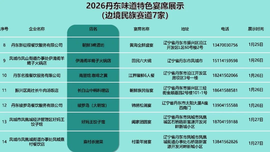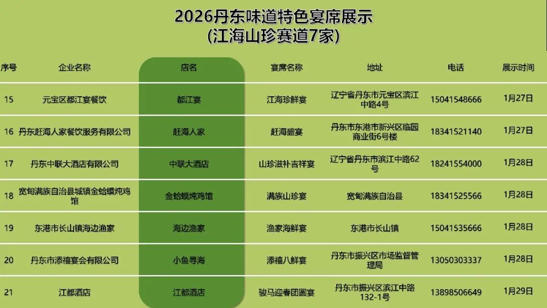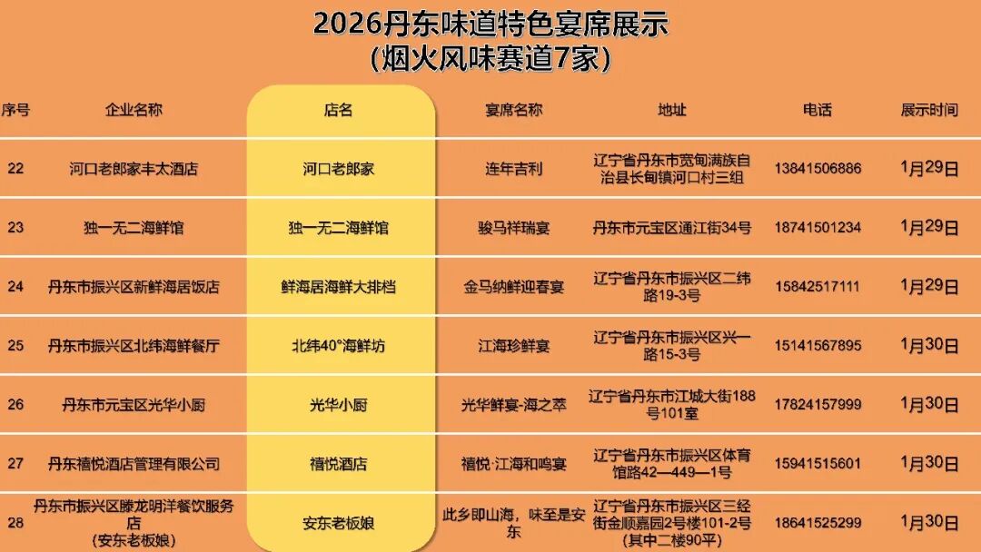此外,“寻味丹东,宴竞风华”2026丹东味道特色宴席展示推广活动同步进行。全市甄选优质餐饮企业推出年夜饭促销活动,并通过“丹东商务”公众号和多位网红主播发布宴席视频,讲述菜品背后的故事与匠心细节。