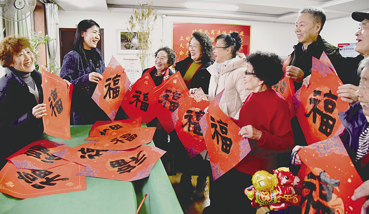 1月28日,振兴区永昌街道北桥社区党委邀请书法志愿者为社区居民们现场写春联、“福”字,让居民在墨香中感受浓浓的年味儿。
