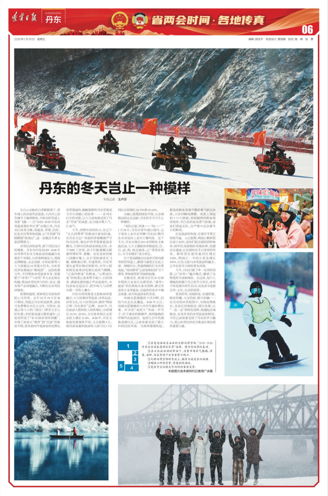 1月30日,《辽宁日报》在第06版刊文《丹东的冬天岂止一种模样》,对丹东市以冰雪为媒,将温泉、草莓、民俗、红色文化等串珠成链,让“冷资源”持续释放“热效应”,进一步激活冬季文旅消费潜力进行报道。