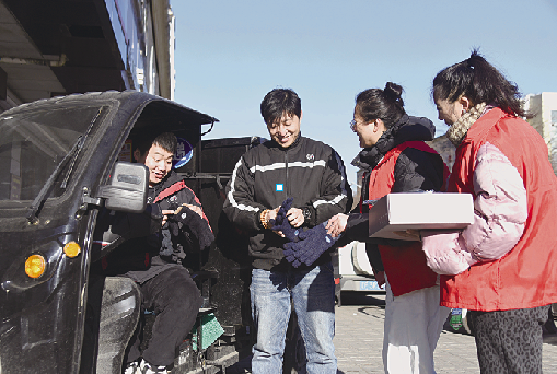1月27日,振兴区永昌街道书香社区党委开展关爱新就业群体送温暖活动,为在寒风中辛苦奔波的快递小哥送上防寒手套,传递社区关怀。