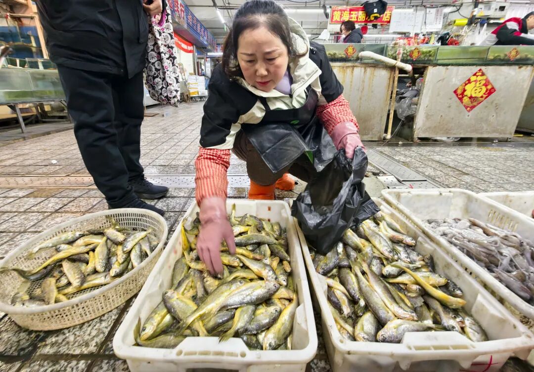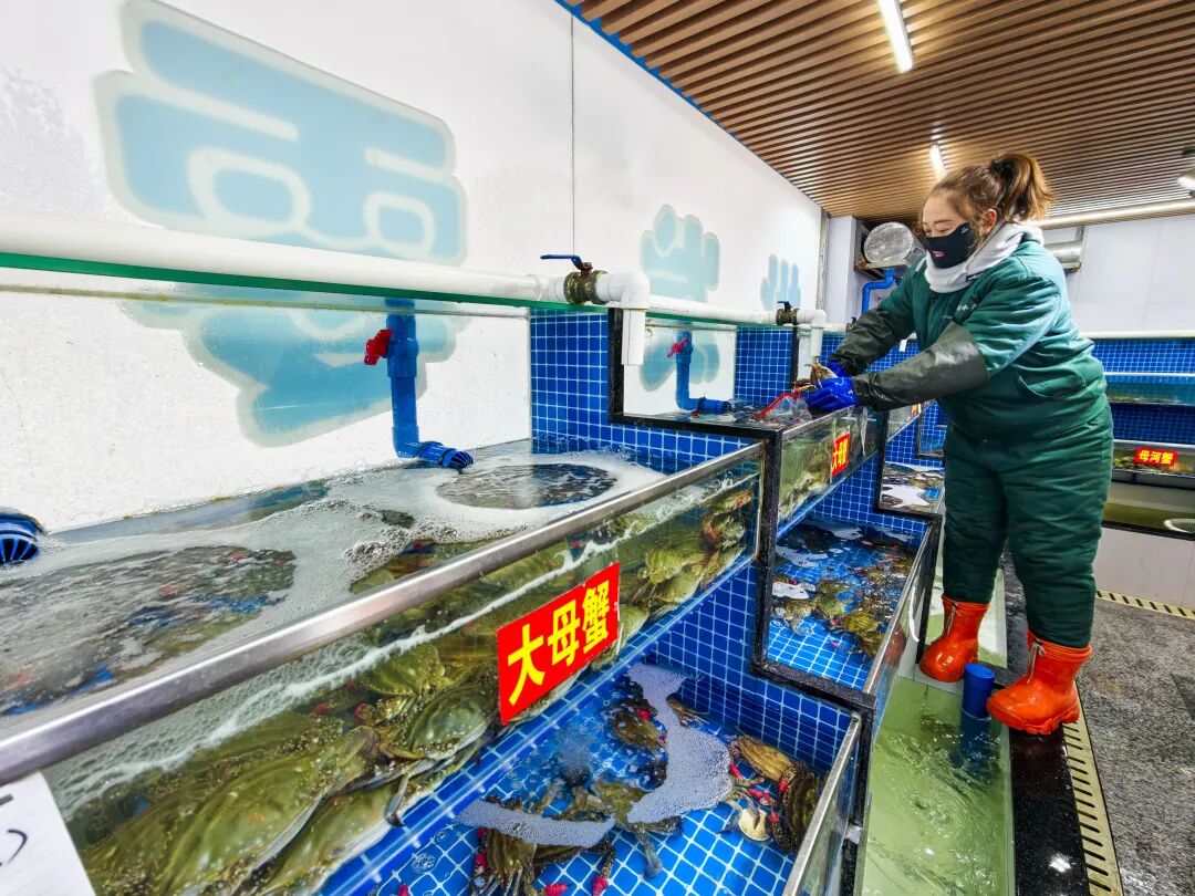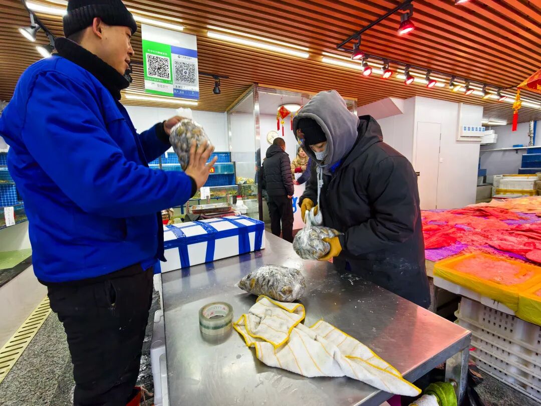 市民和游客络绎不绝,精心挑选着心仪的海鲜,或是为自家年夜饭添上一道硬菜,或是打包寄给远方的亲友。