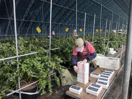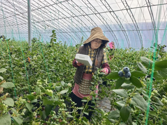 “我们基地里种植的蓝莓品种是L25,单果直径最大的可达24毫米,预计春节期间上市,市场售价稳定在每斤80元至100元,经济效益可观。现在是采摘初期,每天早上摘下来的果子,下午就能全部卖完,供不应求。”边沟村党支部书记王世海说。边沟村蓝莓基地共有蓝莓暖棚14栋,属于全镇8个村的集体产业,2021年建设,2022年5月投入使用,平均每年为每个村增加村集体收入3万元左右,可提供40余个就业岗位,带动20多户农户发展蓝莓产业。“活也不累,一天干八九个小时,收入一百多块钱,一年能干7个多月,挣钱顾家两不耽误。”65岁的王桂媛边摘蓝莓边对记者说。